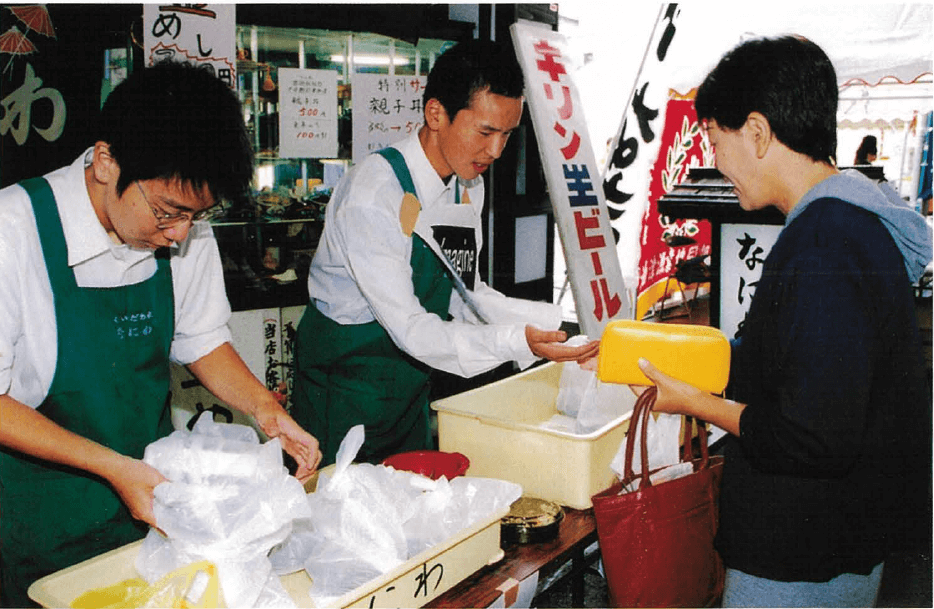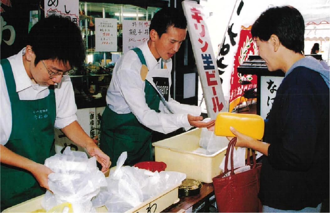 これまでの都商の歩みを記念誌に掲載した写真を古い時代から年表に沿い、順にご覧になりながら振り返ることができます。
